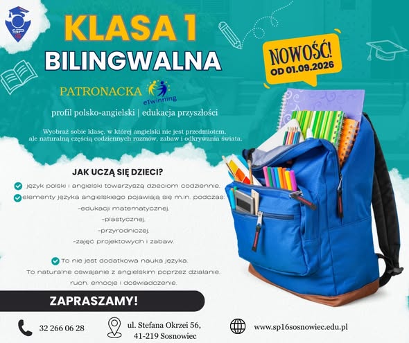 NOWOŚĆ! Klasa 1 Bilingwalna pod patronatem eTwinning już od 1 września 2026!